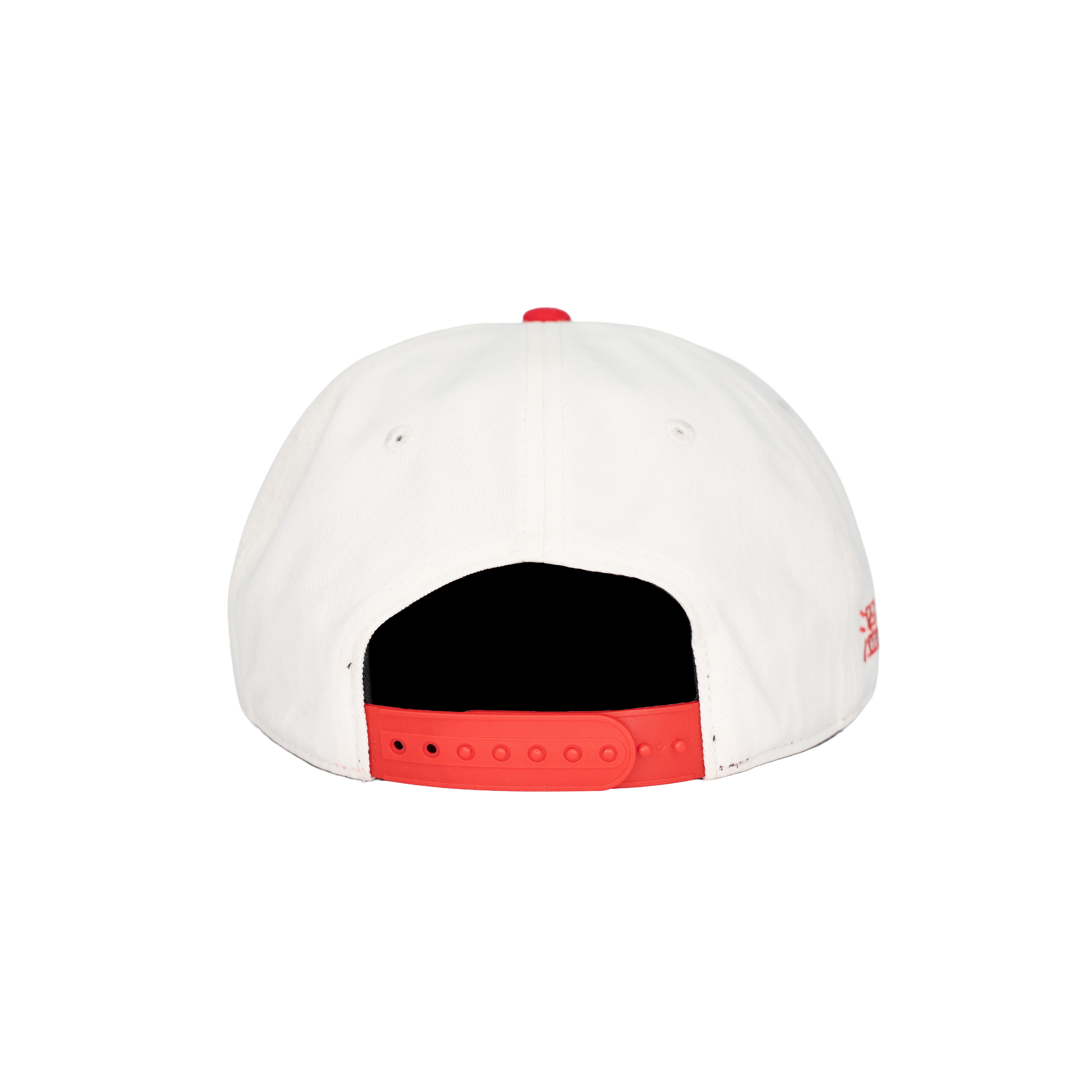 Custom 5 panel cotton twill snapback with unstructured crown and front embroidered turf club design and 'Vancouver' chinese characters on the side panel. Available in 3 colourways.