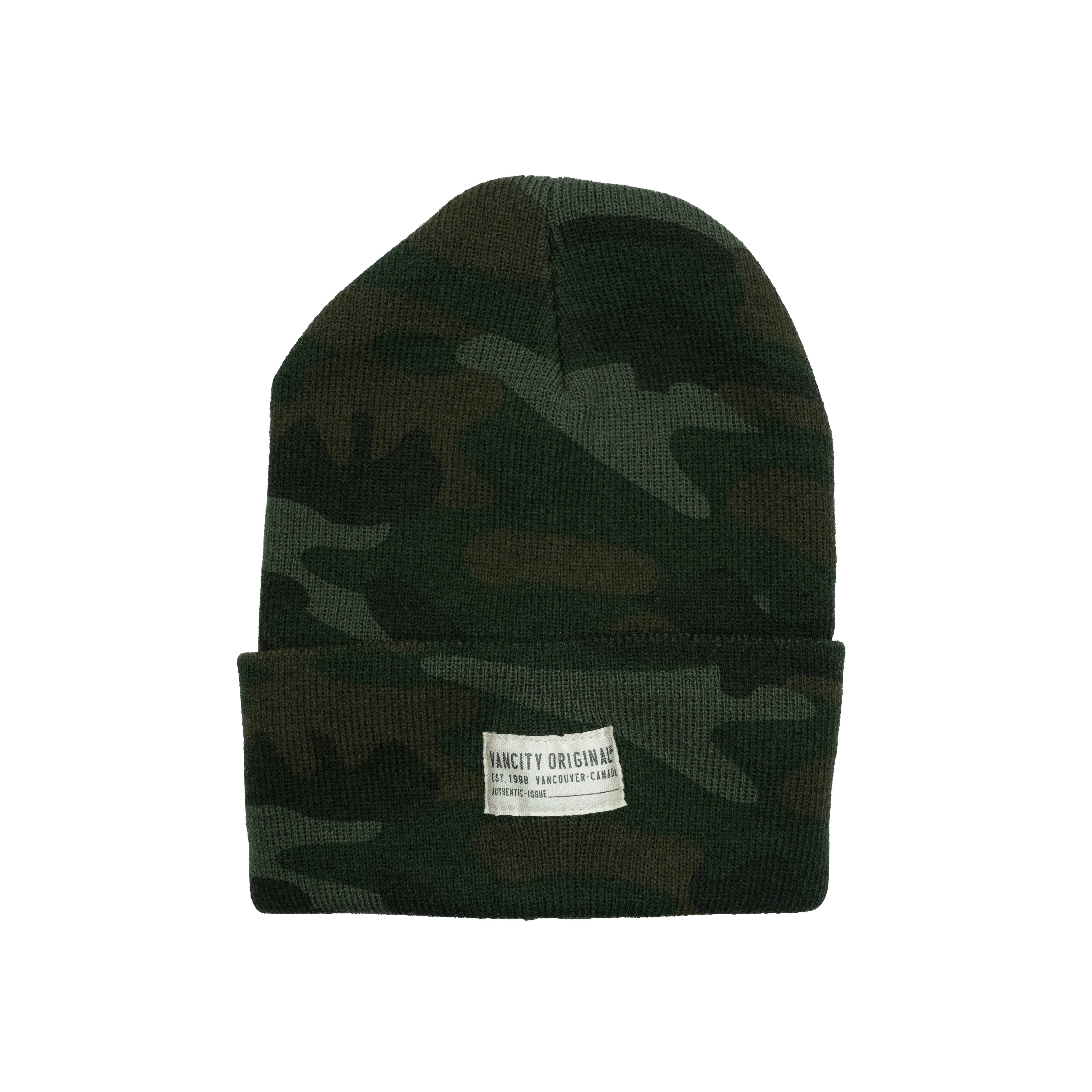 Vancity Original Authentic Issue beanie in camouflage is crafted from high-quality acrylic yarn. This beanie provides softness, warmth, and durability.
