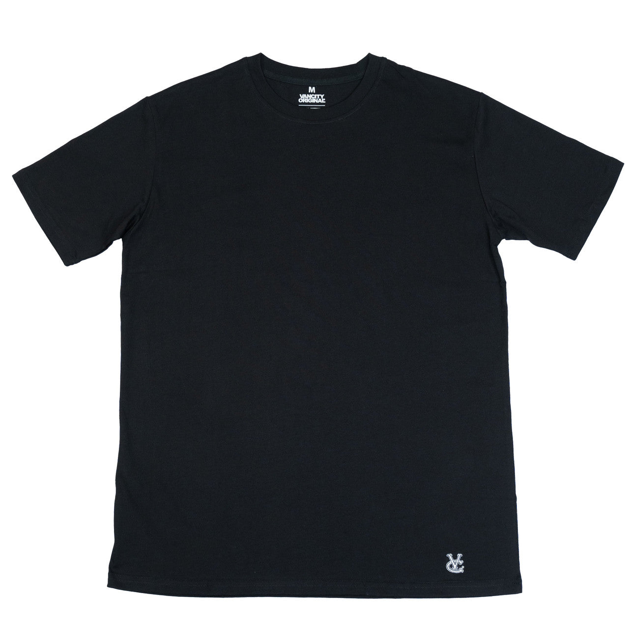 100% cotton 210 gsm Fresh tees available in black and white with a 1" embroidered VC logo on the left hip.